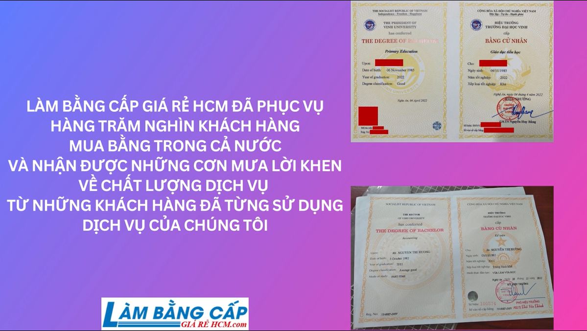 Lambangcapgiarehcm nhận làm bằng đại học tại Vinh uy tín, chất lượng. Cam kết bằng phôi thật giống bằng cấp tại trường đến 100%. Đây là địa chỉ đã từng phục vụ hàng trăm nghìn khách hàng mua bằng trong cả nước. Vậy liên hệ với chúng tôi bằng cách nào? Làm sao để tránh bọn lừa đảo giả danh cơ sở để chiếm đoạt tiền của khách hàng. Khách hàng hãy theo dõi nội dung bài viết dưới đây để tìm ra câu trả lời nhé.